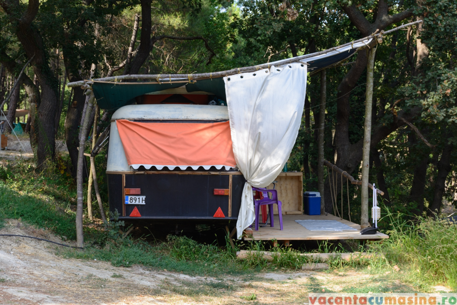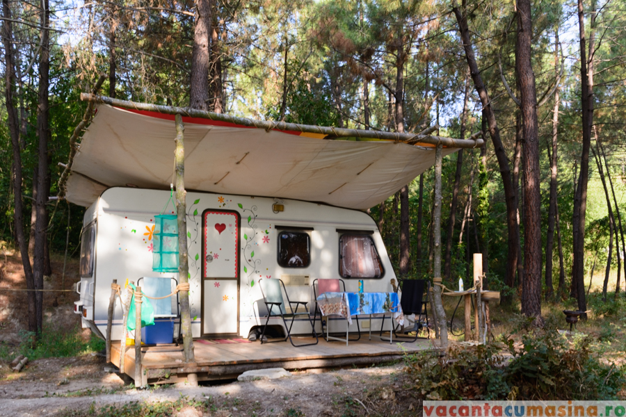 Desi nu ne-a placut cum stau la capitolul curatenie, am decis totusi sa ramanem, pentru ca ne-a placut foarte mult amplasarea si peisajul. Nu am reusit sa ne montam cortul – pamantul era atat de batatorit, incat nu am putut sa introducem tarusii, asa ca am inchiriat o rulota, sa ne obisnuim pana ne-o luam pe a noastra (la pensie).  Fie vorba intre noi, e grozav la rulota, dar sa fie a ta.